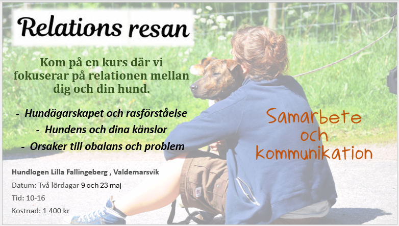 HINDERBANAN STÅR FRAMME från lördag 13 december! Passa på att boka en kul stund med din hund! Du har dessutom tillgång till stor rasthage att springa fritt i vid önskemål. För 250 kr har du banan ensam i två timmar.